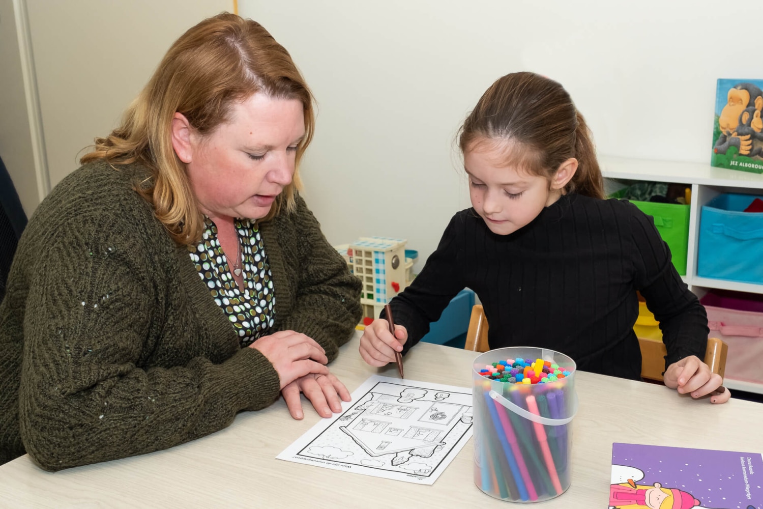 Binnen de logopedie laten we kinderen de letters en klanken spelenderwijs ervaren, hakken en plakken en succeservaringen opdoen.